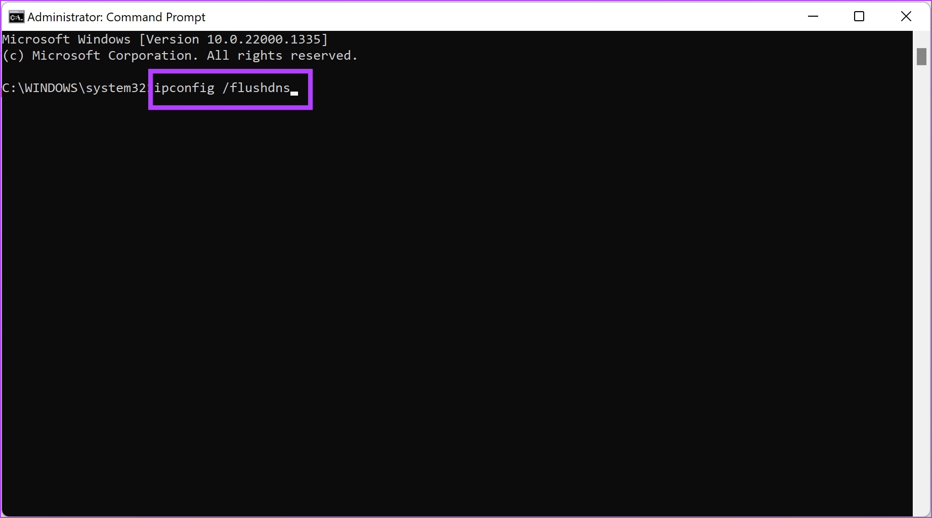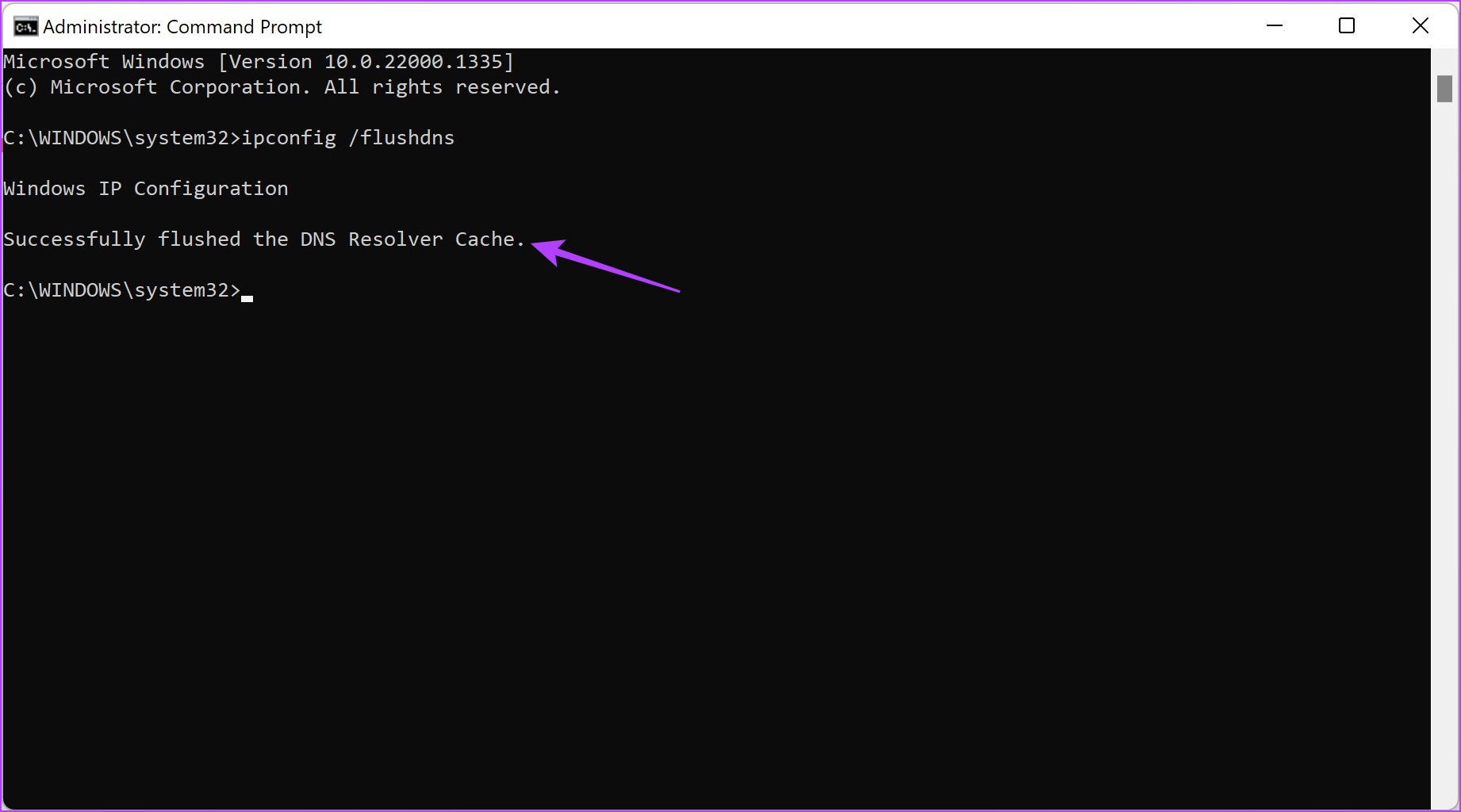 Paso 3: Una vez que reciba el mensaje «Caché de resolución de DNS vaciado con éxito», salga de la ventana del símbolo del sistema.