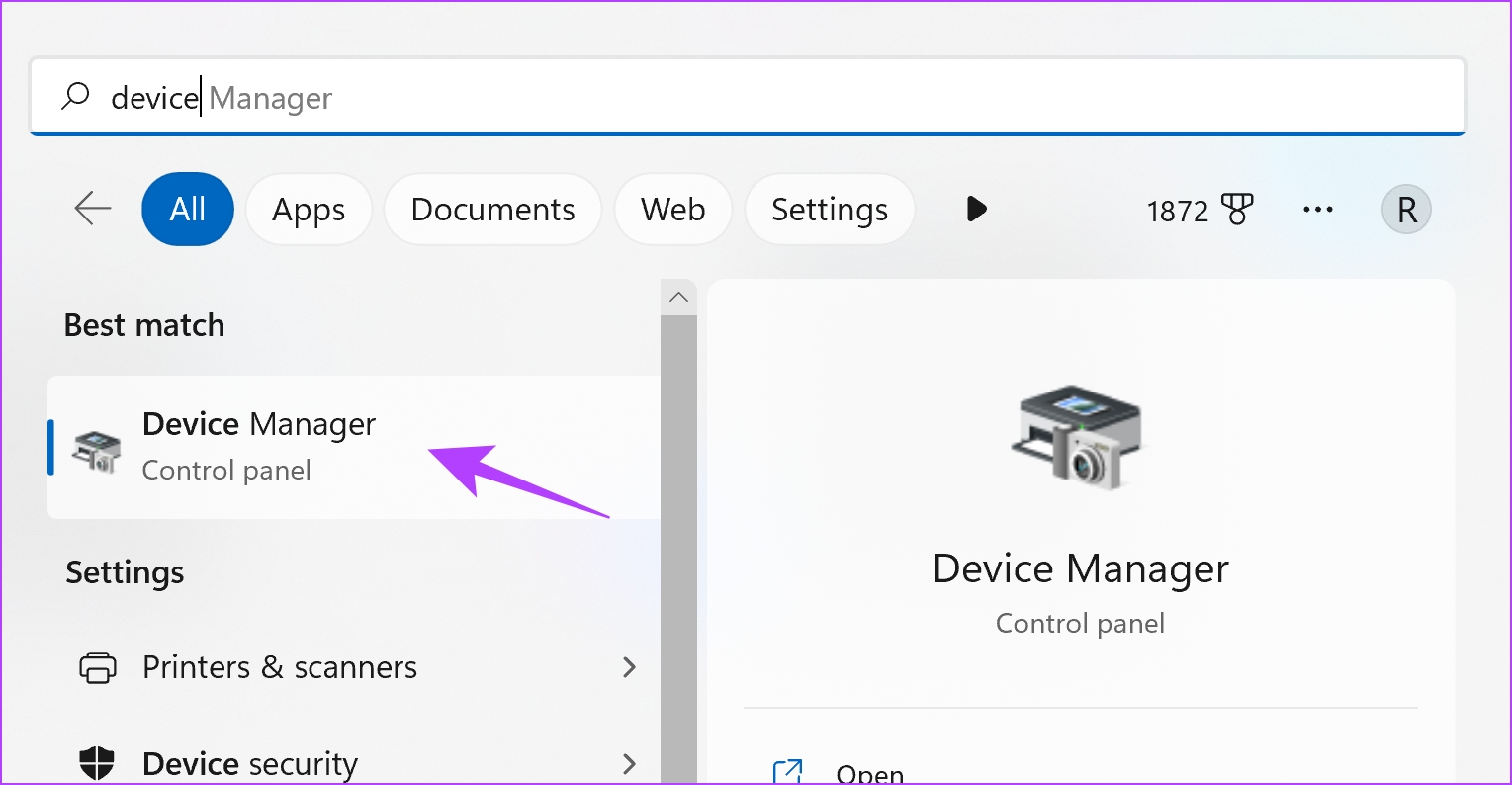 Paso 1: Abra el Administrador de dispositivos desde el menú Inicio.