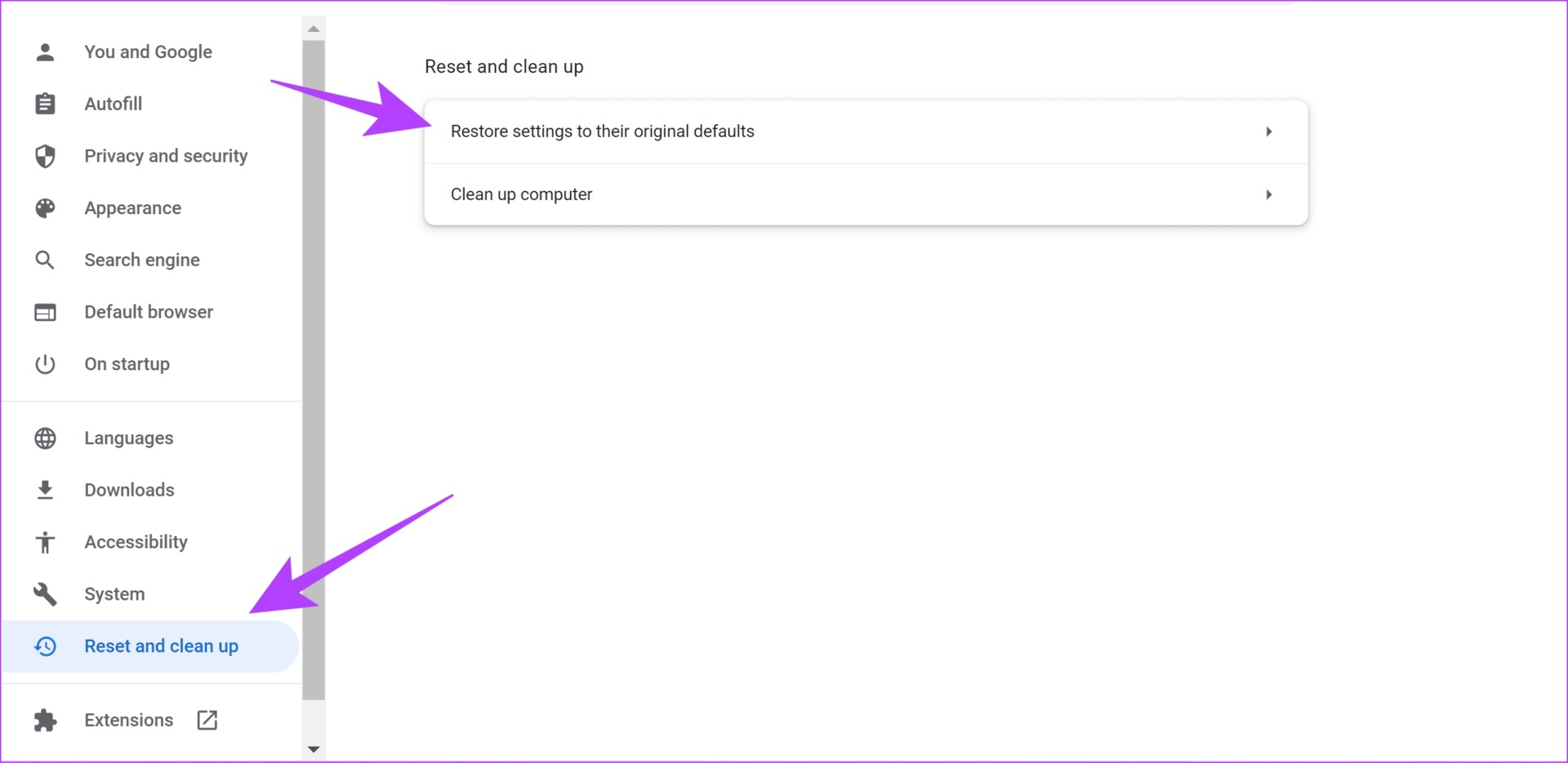Restablecer Google Chrome restaura todas sus configuraciones a sus valores predeterminados Esto debería ayudar si una configuración incorrecta es responsable de los problemas de transmisión en Twitch. Esto puede ayudar a resolver el problema. Siga los pasos a continuación para restablecer su navegador web.