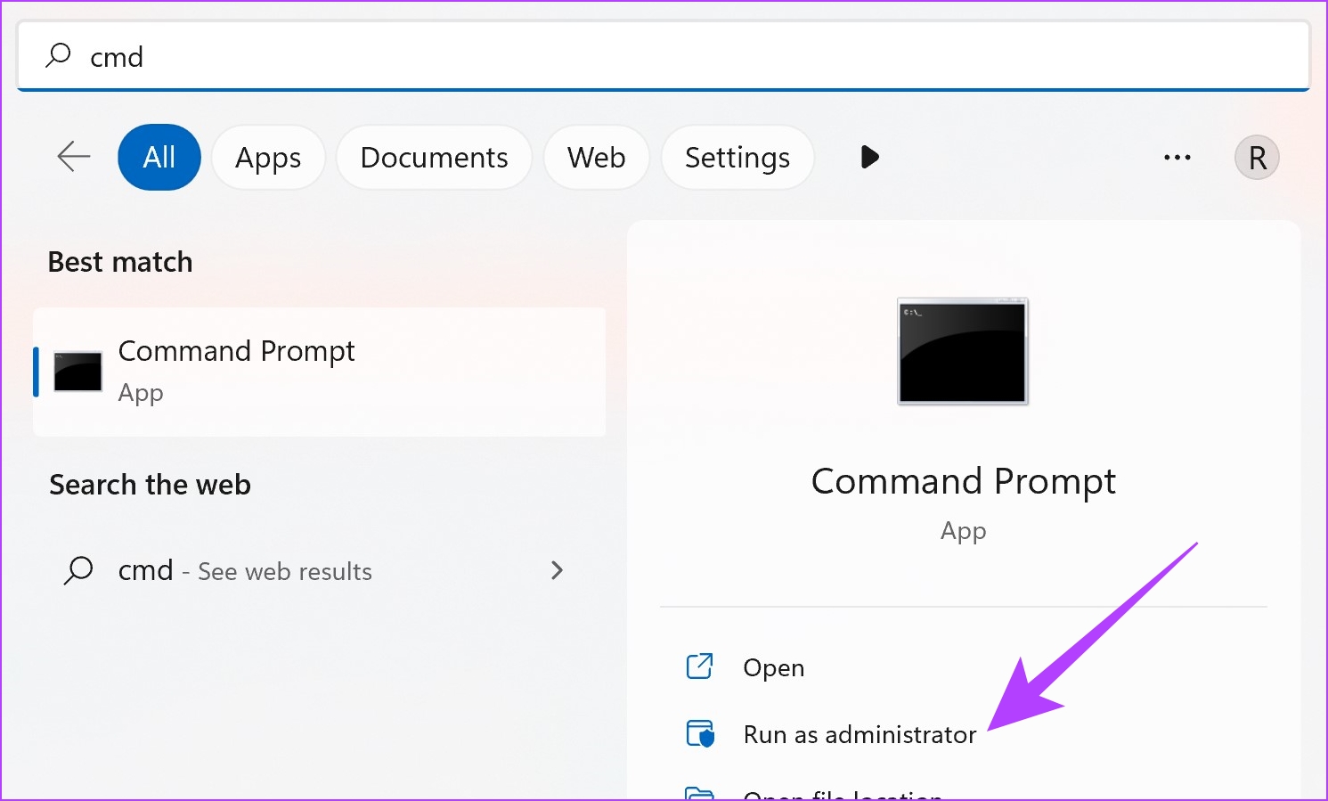 Paso 1: buscar símbolo del sistema En el menú Inicio y toque ‘Ejecutar como administrador’.