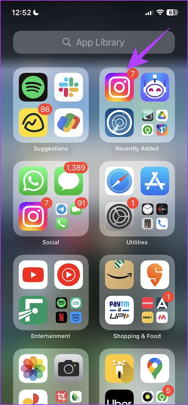 Paso 2: Deslice hacia arriba para cerrar la aplicación y luego vuelva a abrirla desde su biblioteca de aplicaciones.