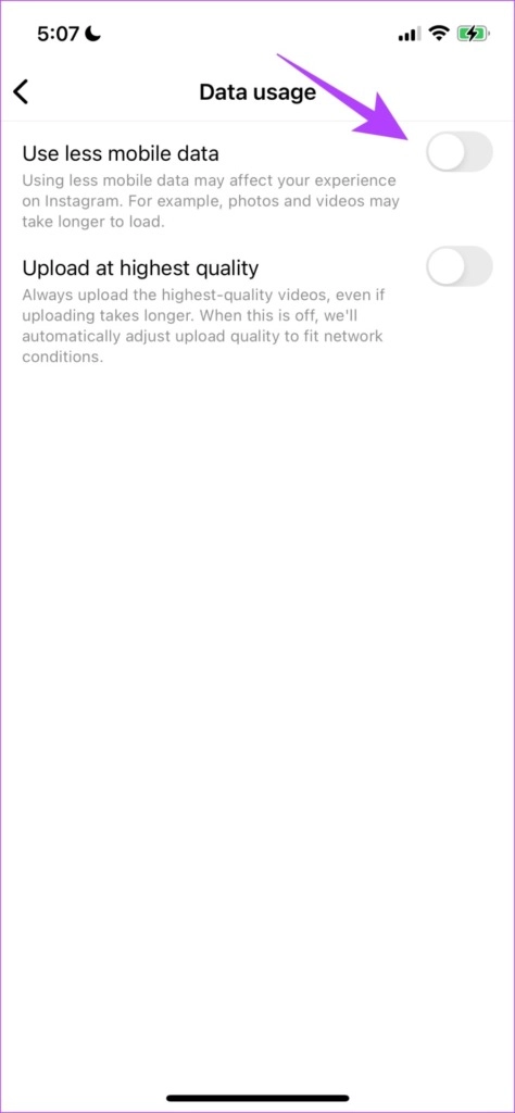 Instagram tiene un interruptor de ahorro de datos incorporado que ayuda a reducir el consumo de datos móviles mientras se usa la aplicación. Sin embargo, si tiene algún problema al cargar una historia, siempre se recomienda desactivar esta opción y darle a Instagram acceso ilimitado a Internet.