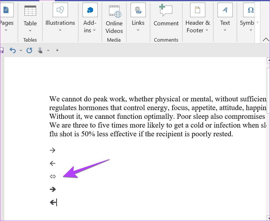 Si desea insertar regularmente una flecha en su documento de Word, puede agregarla ingresando su código. De esta manera, no tiene que repetir los pasos mencionados anteriormente una y otra vez.