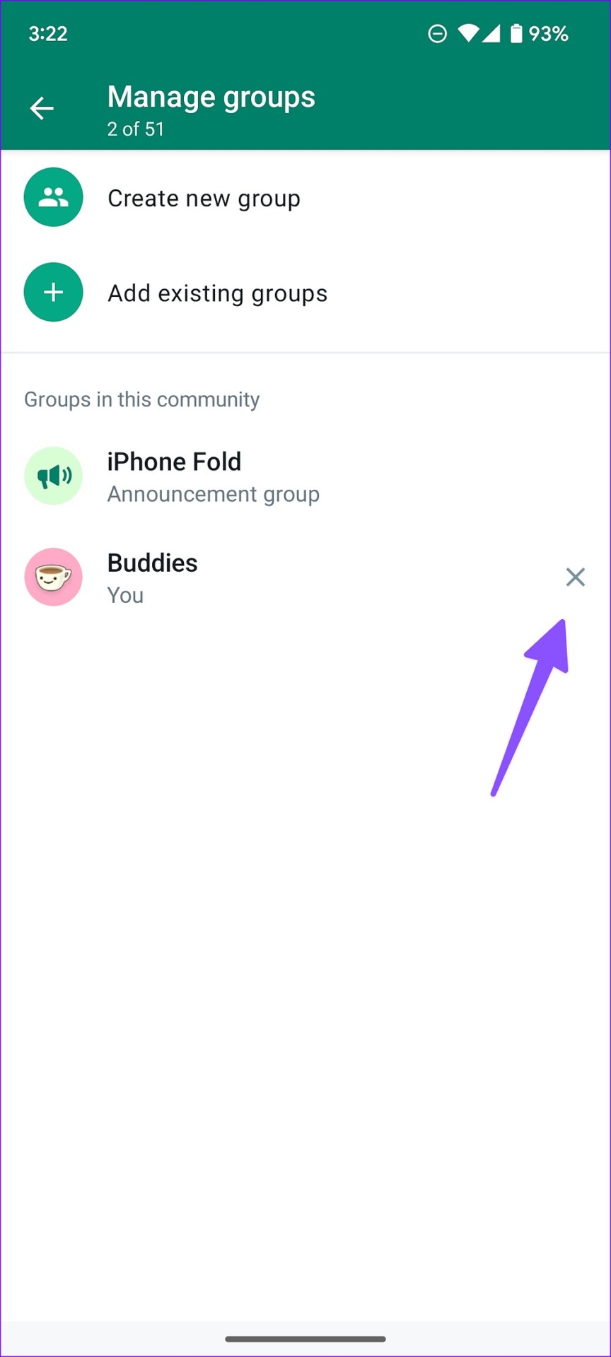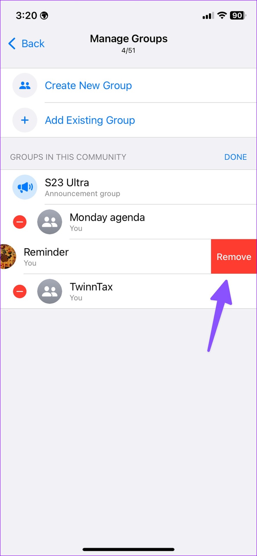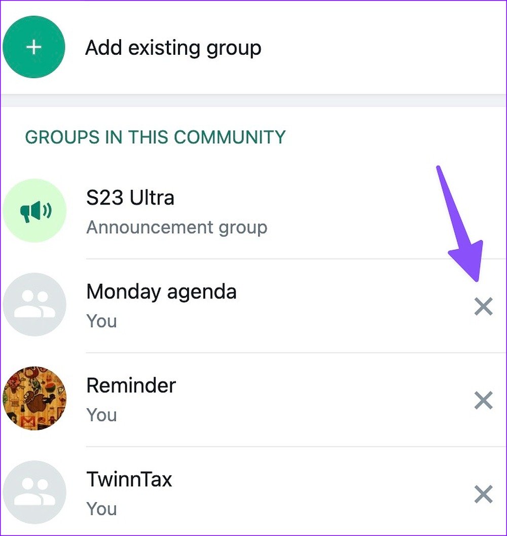 Paso 2: Toque la x junto a un grupo para eliminarlo