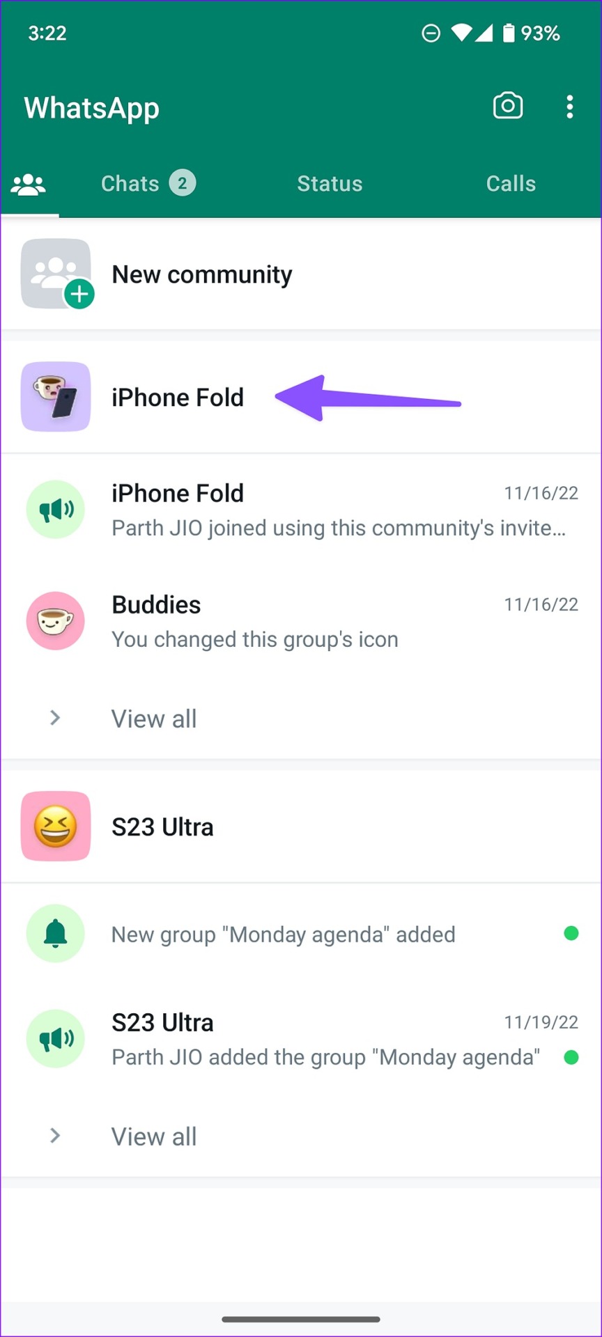 Paso 1: Abra una comunidad de WhatsApp y administre grupos (consulte los pasos anteriores).