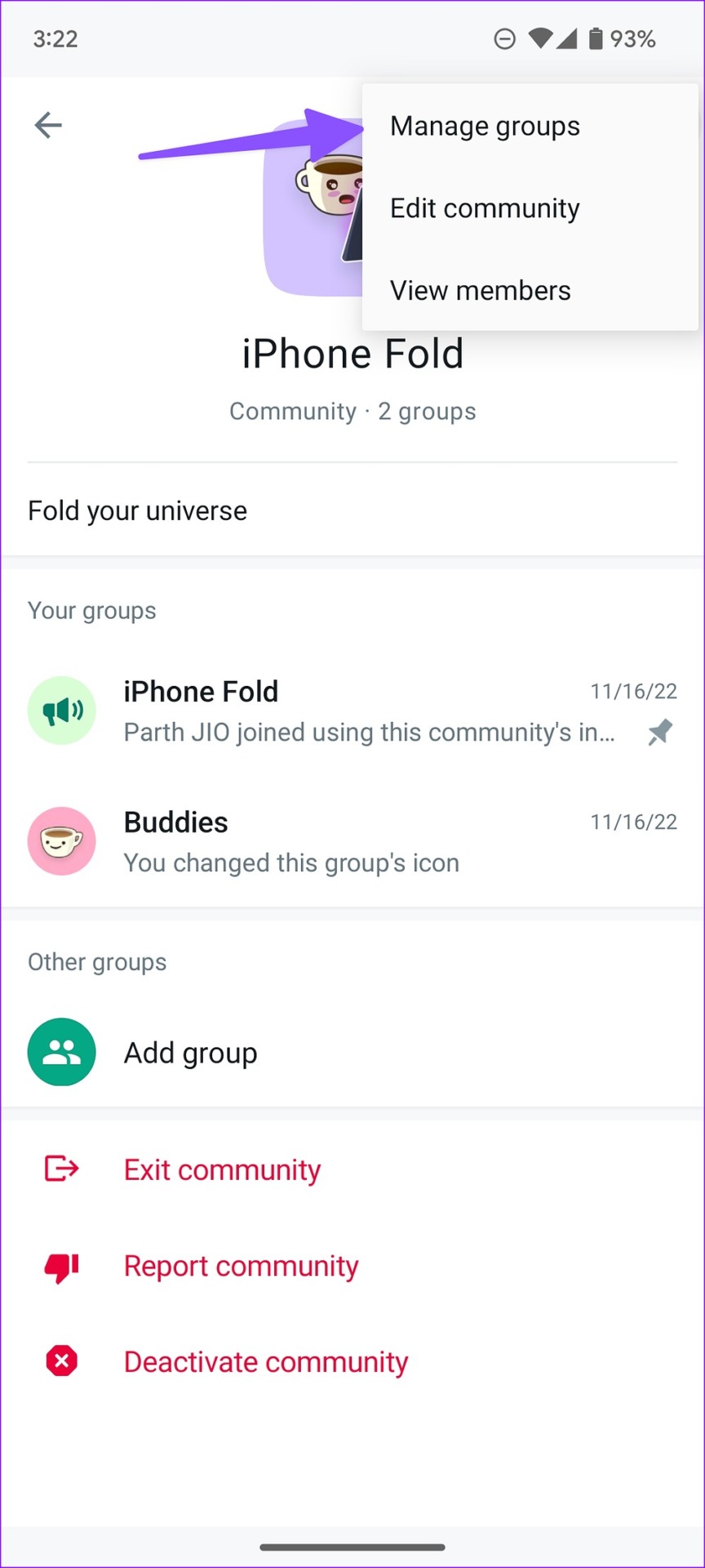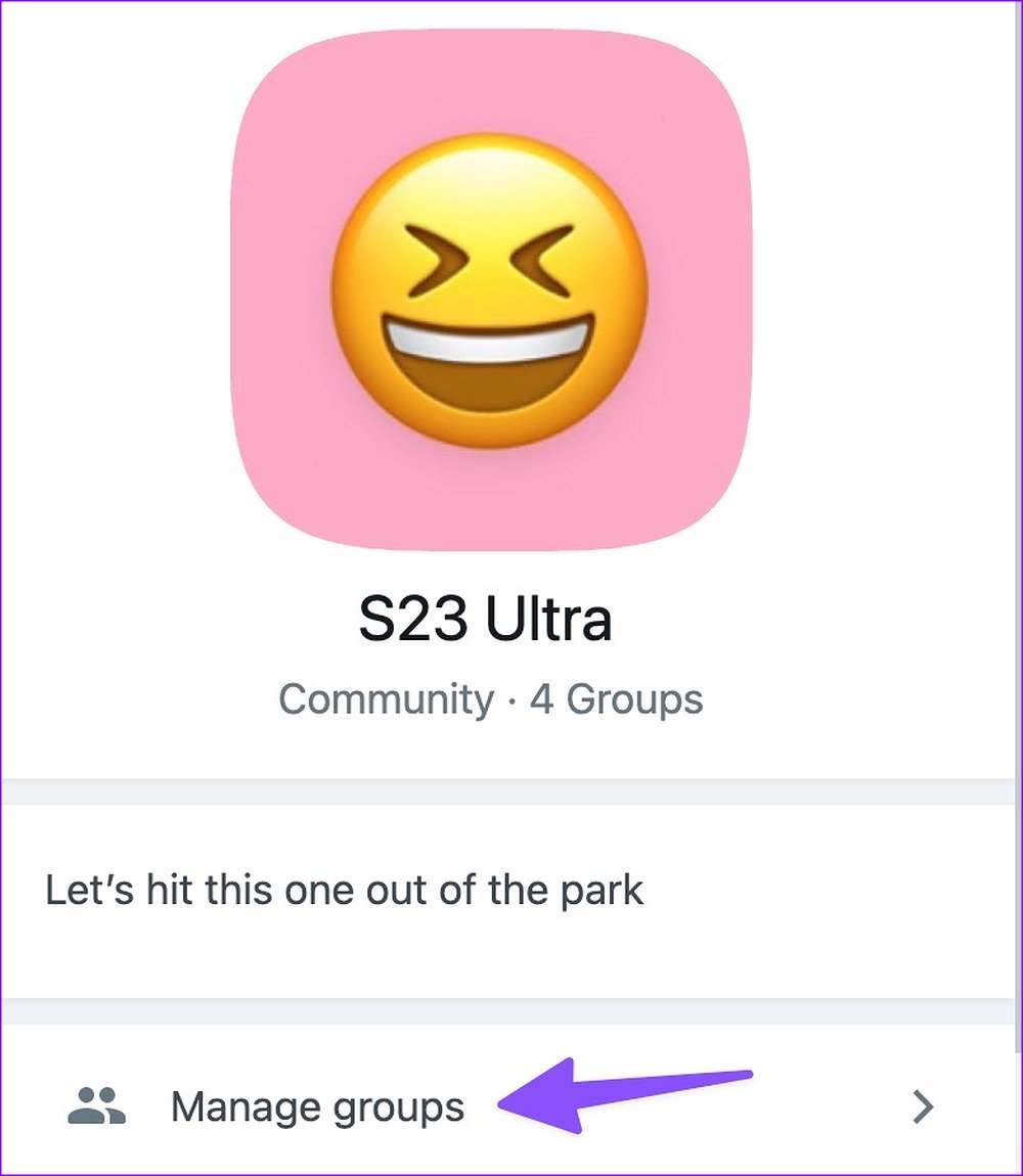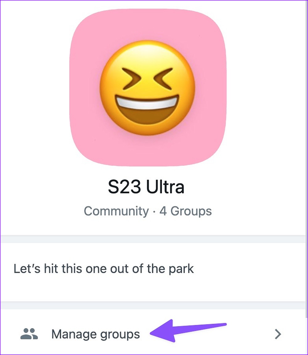Paso 3: Abra una comunidad para realizar cambios. Seleccione ‘Administrar grupos’