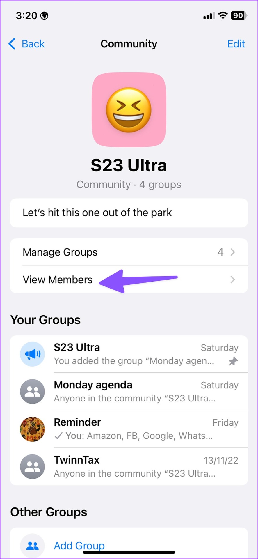 Paso 2: Echa un vistazo a los grupos en la comunidad. Presiona Editar.
