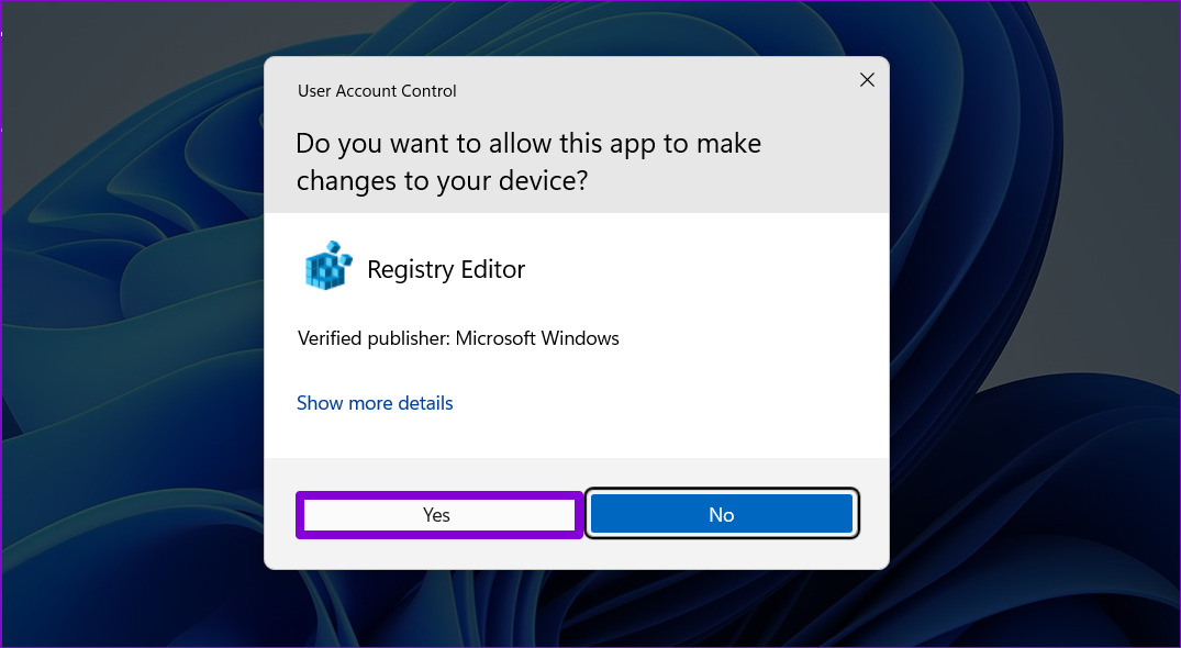 Paso 2: Seleccione Sí cuando aparezca el mensaje Control de cuentas de usuario (UAC).