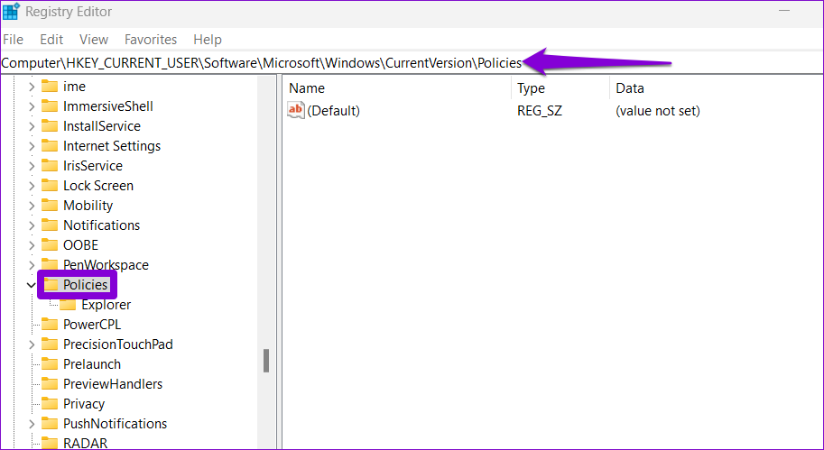HKEY_CURRENT_USER\Software\Microsoft\Windows\CurrentVersion\Policies