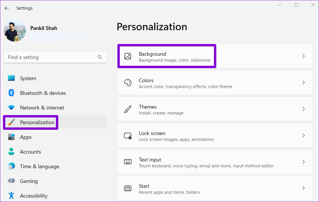 Paso 2: Cambie a la pestaña Personalización y seleccione Fondo en el panel derecho.