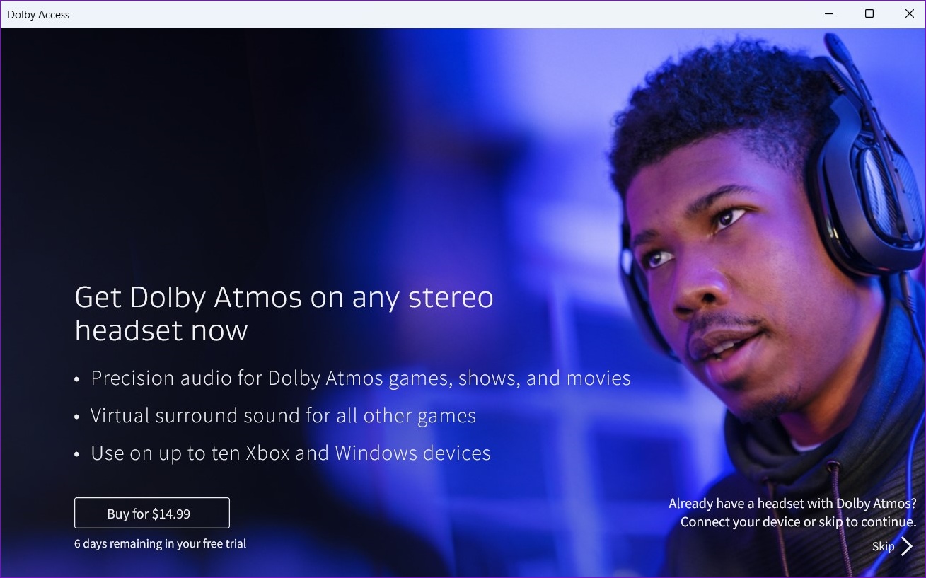 Alternativamente, si no tiene parlantes o auriculares compatibles con Dolby Atmos, puede comprar ‘Dolby Atmos para auriculares’ desde la aplicación Dolby Access; esta es una compra única. La aplicación promete imitar el sonido Dolby Atoms virtual en cualquier par de auriculares.