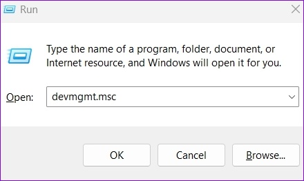 Paso 1: Presione la tecla de Windows + R para abrir el cuadro de diálogo Ejecutar. Escribe devmgmt.msc cuadro y presione Entrar.