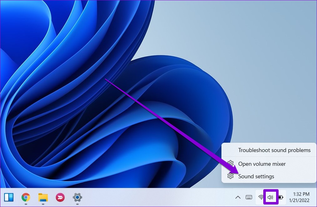 Paso 1: Haga clic con el botón derecho en el icono del altavoz en la barra de tareas y seleccione Configuración de sonido en el menú Abrir.