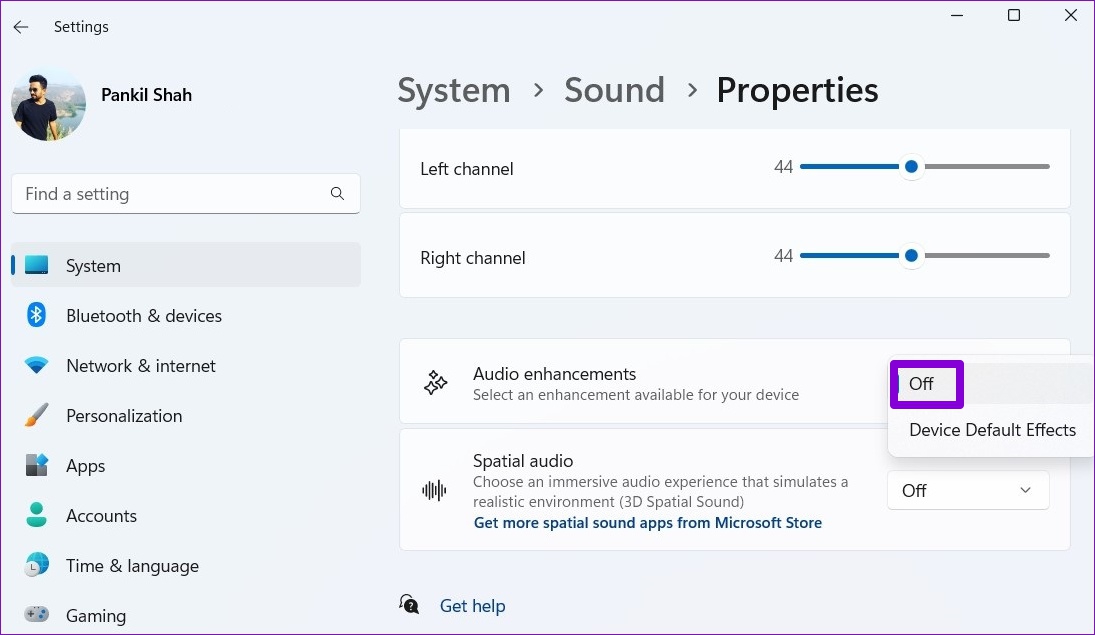 Windows 11 tiene varias características de mejora de audio que pueden ayudar Mejora la calidad de sonido de tu PC. Sin embargo, estas mejoras a veces pueden cambiar el nivel de volumen aleatoriamente. Por lo tanto, es mejor deshabilitarlos si tiene problemas.