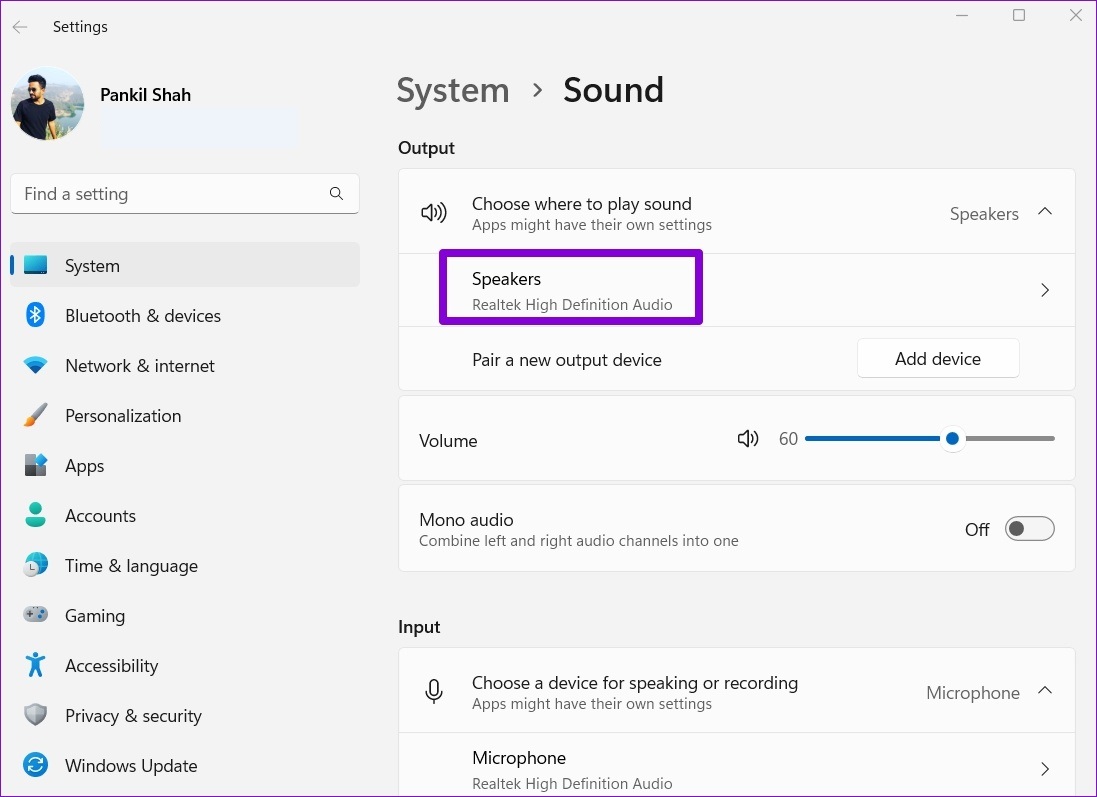 Paso 1: Presione la tecla de Windows + I para abrir la aplicación Configuración. En la pestaña Sistema, haga clic en Sonido.