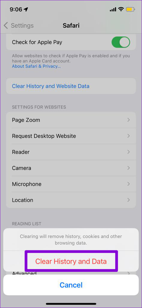 5. Borrar el historial de Safari y los datos del sitio web