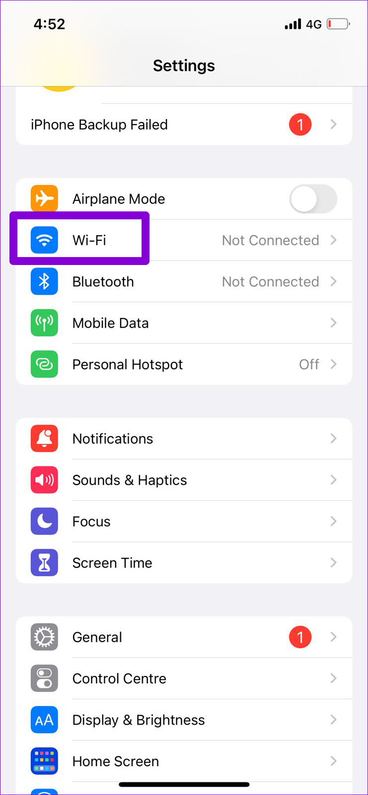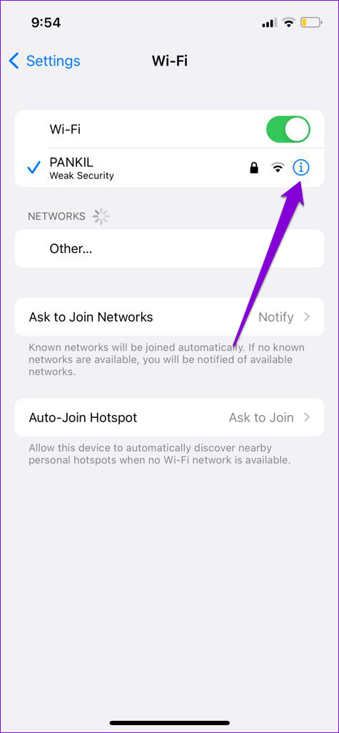Paso 1: Abra Configuración en su iPhone y navegue hasta Wi-Fi. Toque el icono de información junto a su red Wi-Fi.