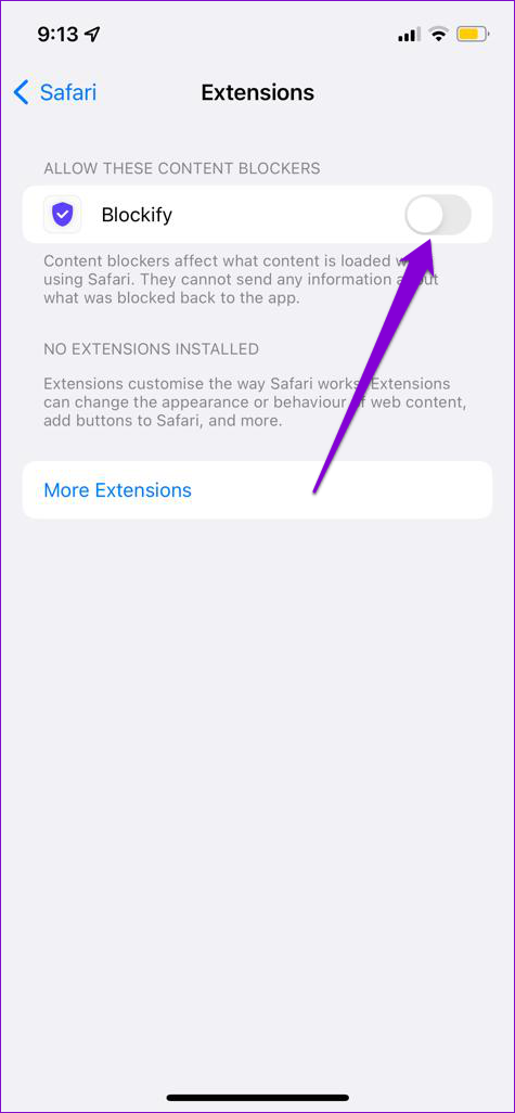 Con iOS 15, Apple trajo soporte de extensión a Safari para iPhone. Si bien estas extensiones mejoran su experiencia de navegación, algunas de ellas pueden interferir con la capacidad de Safari para conectarse de manera segura a un sitio.