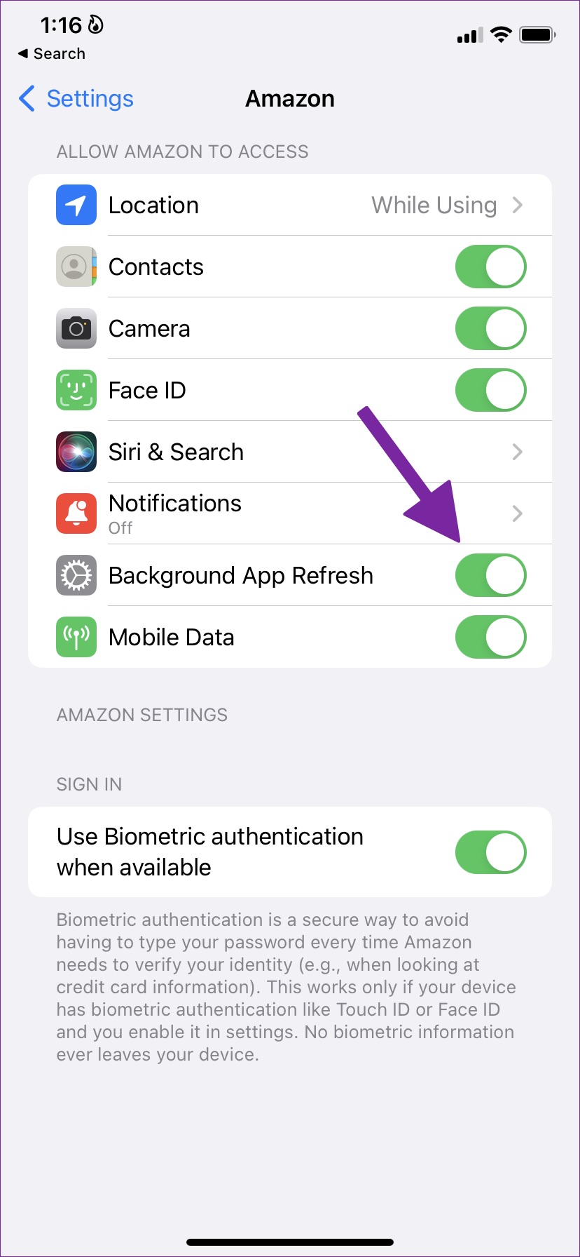 Si ha deshabilitado la ‘Actualización de la aplicación en segundo plano’ para una aplicación en particular, no puede ejecutarse en segundo plano ni enviar notificaciones en tiempo real. Debe habilitar el interruptor para la aplicación desde el menú de configuración.