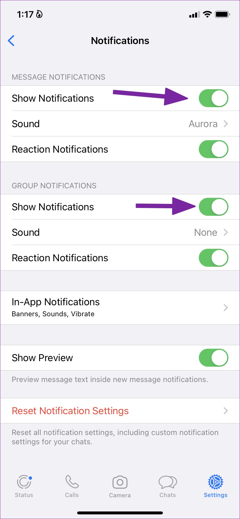 Paso 4: Habilitar notificaciones para conversaciones y grupos
