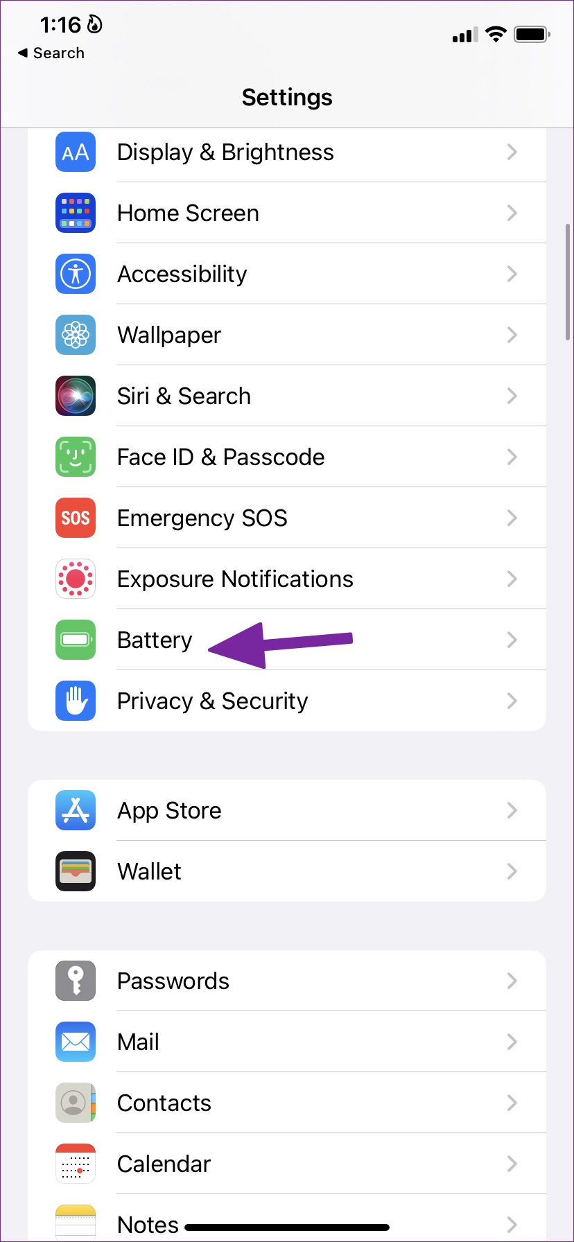 Paso 1: Abra Configuración y abra ‘Batería’.