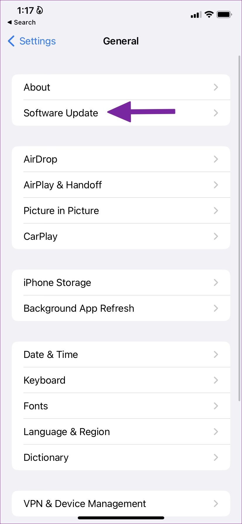 Paso 2: Seleccione ‘Actualización de software’.