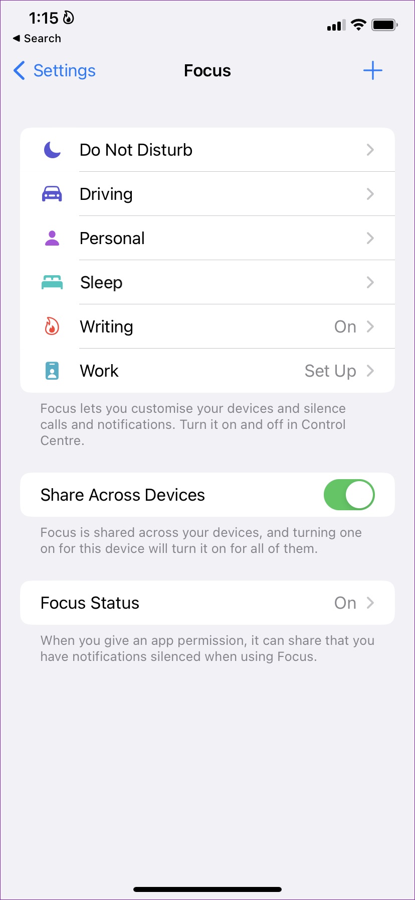 Focus es DND (No molestar) de Apple en el iPhone. Si tiene activado Focus, iOS pausará todas las notificaciones en el iPhone. Debe deshabilitar el enfoque en iPhone o excluir sus aplicaciones favoritas del enfoque.