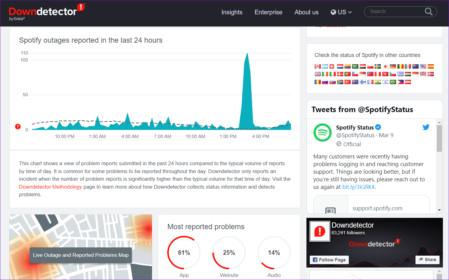 Sitios web como Downdetector monitorean las interrupciones del servidor para varios servicios populares, incluido Spotify. Puede visitar su sitio web para ver si otros tienen problemas similares. Si este es un problema generalizado, su única opción es esperar hasta que Spotify lo solucione.