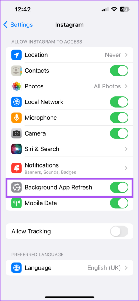 A continuación recomendamos comprobar si Limpiar aplicaciones en segundo plano Habilitado para la aplicación de Instagram. Como sugiere el nombre, esta función sigue actualizando el contenido de las aplicaciones que se ejecutan en segundo plano.