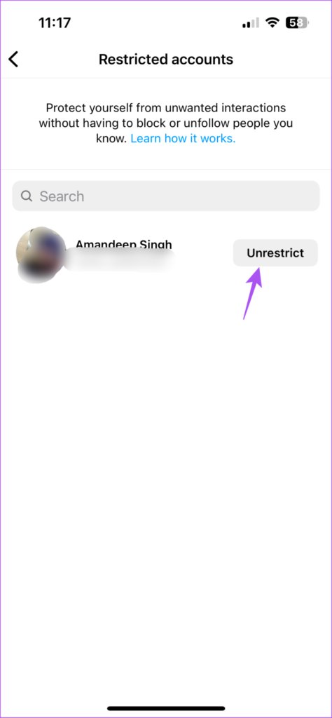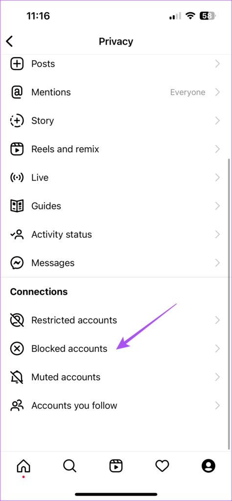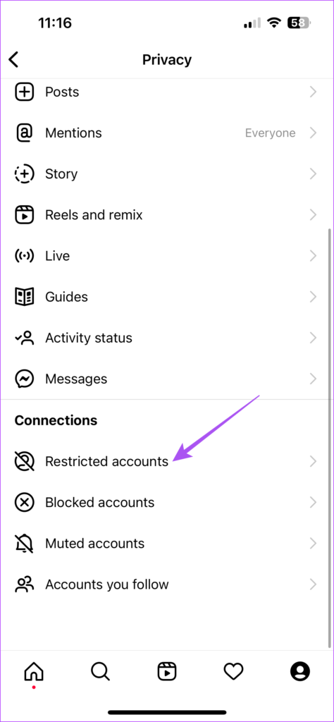 Instagram te da opciones Restringir o bloquear cuentas. Pero si aún no puede recibir notificaciones de historias, puede intentar desbloquear cuentas en su perfil