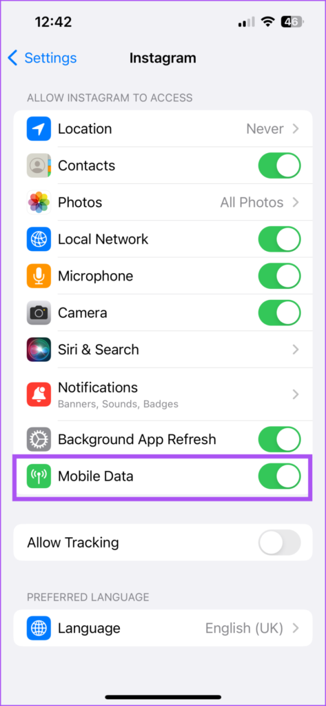 Comencemos a abordar este problema observando el poder de la velocidad de Internet en su iPhone. Si prefiere usar datos móviles la mayor parte del tiempo, así es como puede verificar si Instagram tiene asignación de datos móviles.