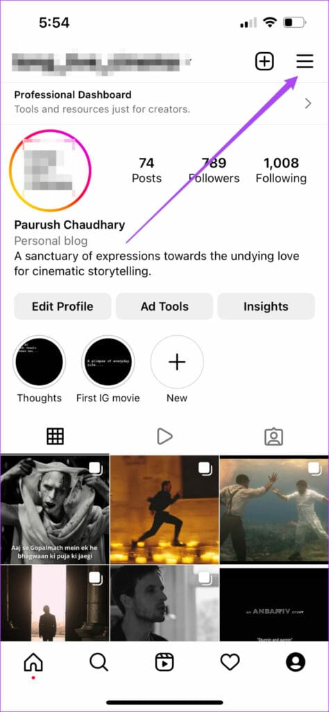 Paso 3: Toca el menú de hamburguesas en la esquina superior derecha.